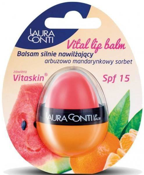 Natural, strongly moisturizing, lip balm with the scent of watermelon and mandarin sorbet with SPF15 filter. The product is delicate and based on natural oils and plant extracts. It is intended for dry and chapped lips.
