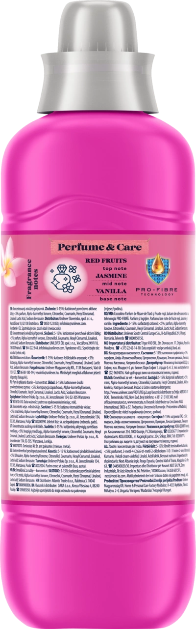 Tiare Flower & Red Fruits fabric softener is a product that not only cares for your clothes, making them incredibly soft to the touch, but also ensures their long-lasting freshness. The unique formula of the product gives fabrics a beautiful scent that will gradually be released for a long time after the clothes are removed from the washing machine. Let the unique floral fragrance composition surround you and improve your mood like the best perfume.