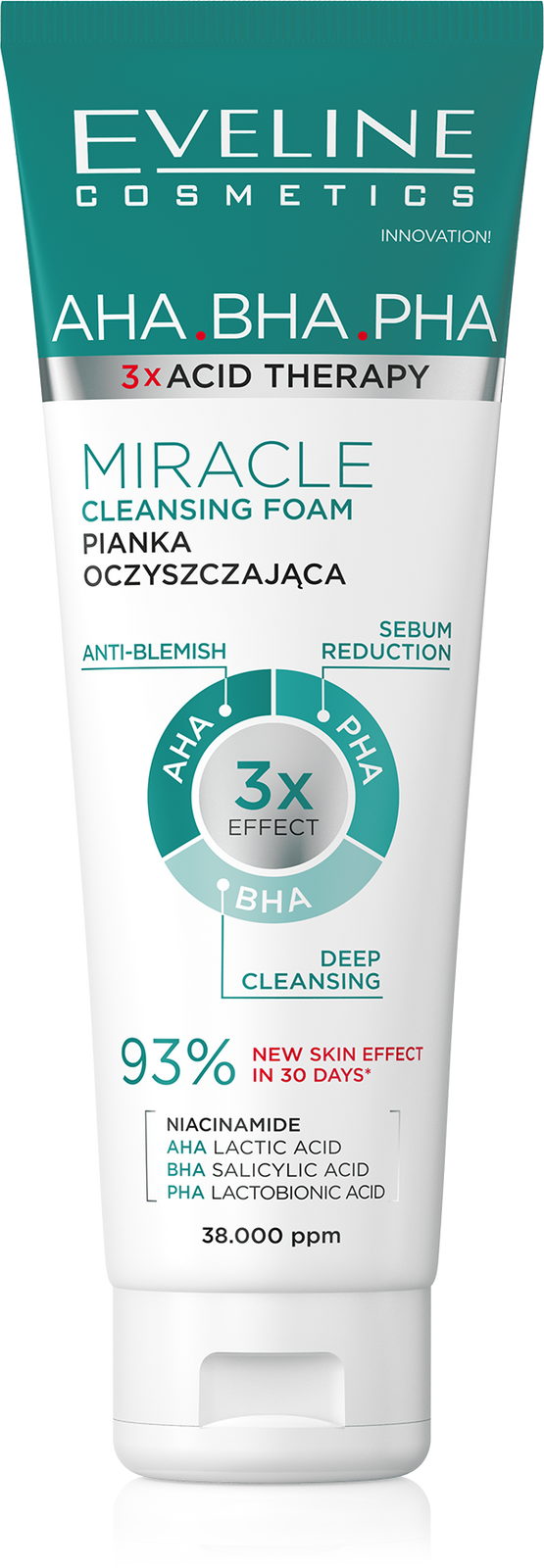 Eveline 3 x Acid Therapy Cleansing Foam for Problematic Skin 140ml