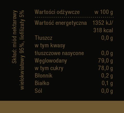 Natural multifloral nectar honey 90%, freeze-dried honey 10%.