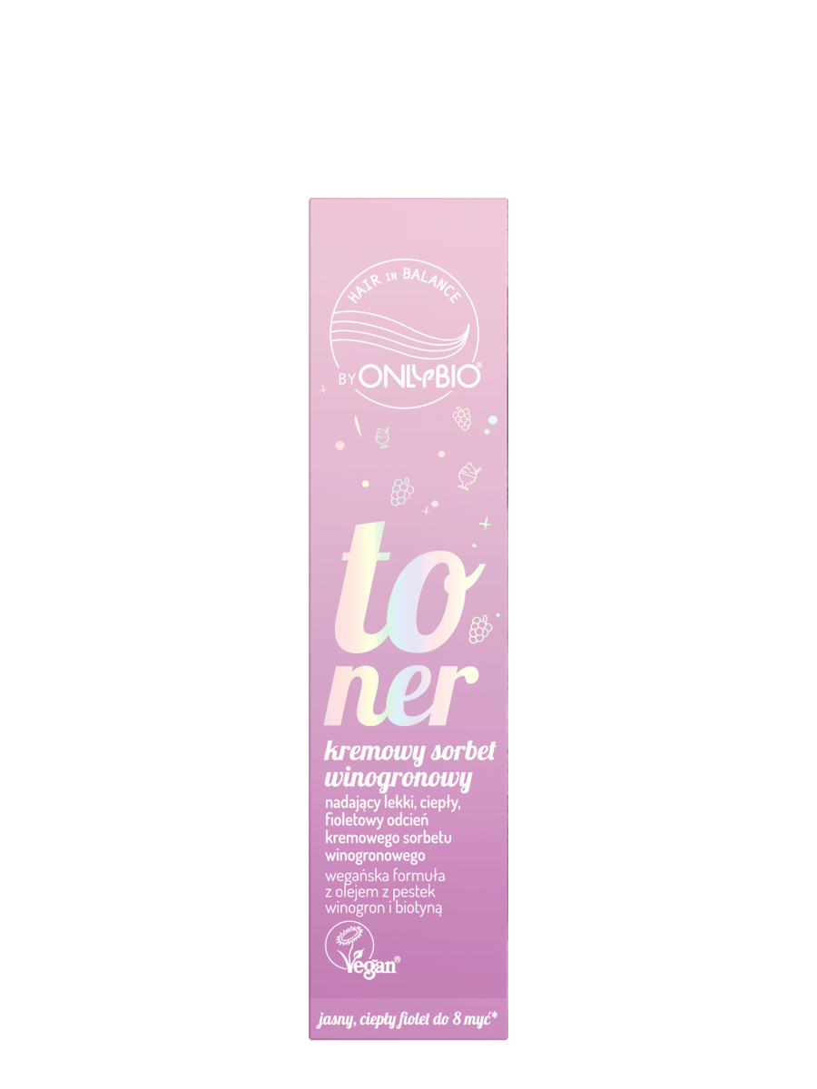 - Grape Sorbet Cream Toner – a pastel purple with a shimmering effect. OnlyBio Grape Sorbet Cream Toner is the perfect choice for lovers of warm, pastel blondes with a hint of purple and an elegant shine.