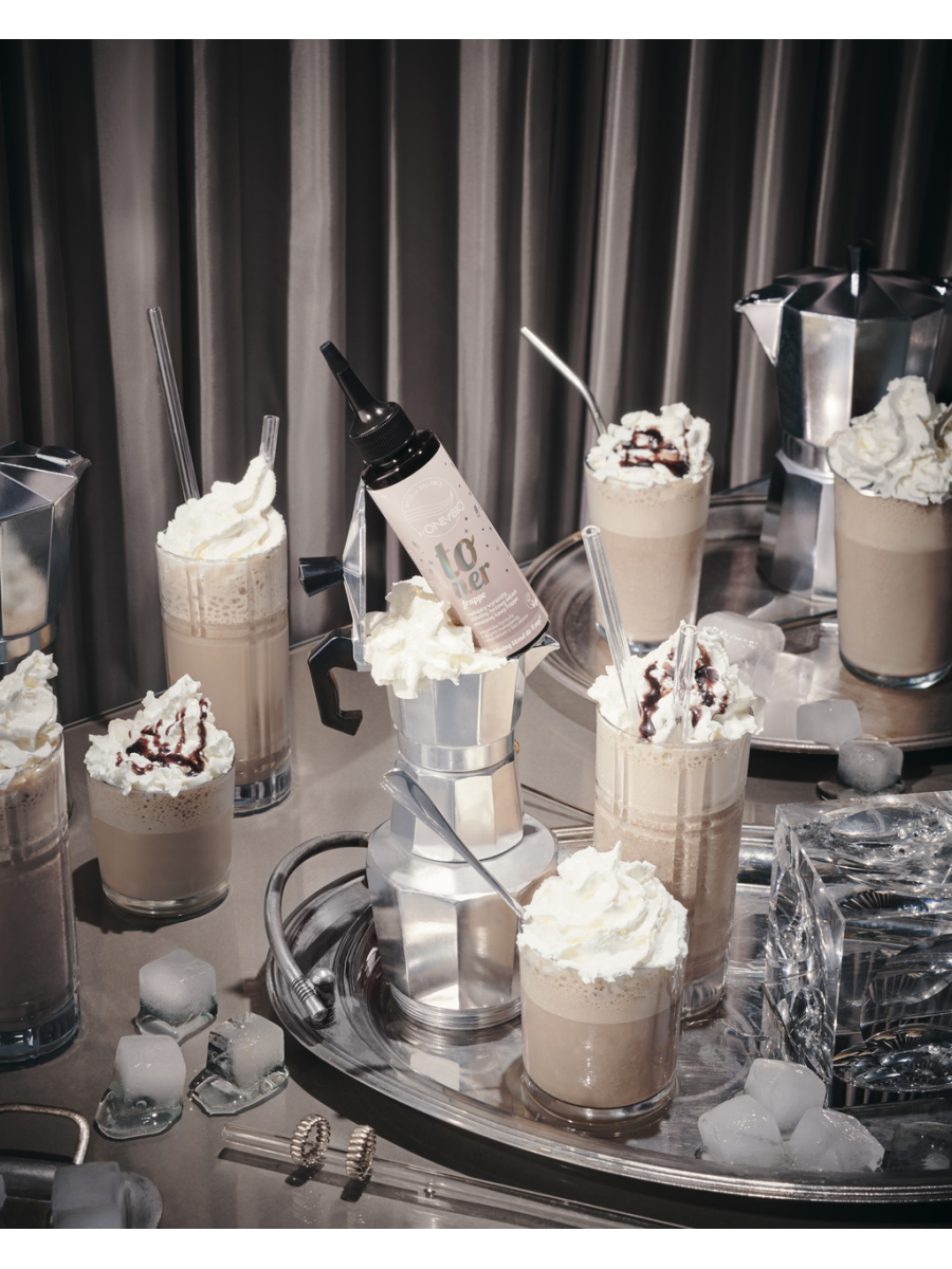 The dessert aroma of an iced coffee frappe enhances your mood during coloring.
