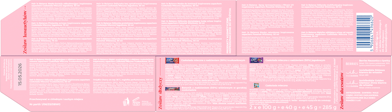 - Hair in Balance masks, conditioners, and mists in the following scents: Milk Chocolate Blueberry, Cherry Paulek, and Milk Chocolate Strawberry
