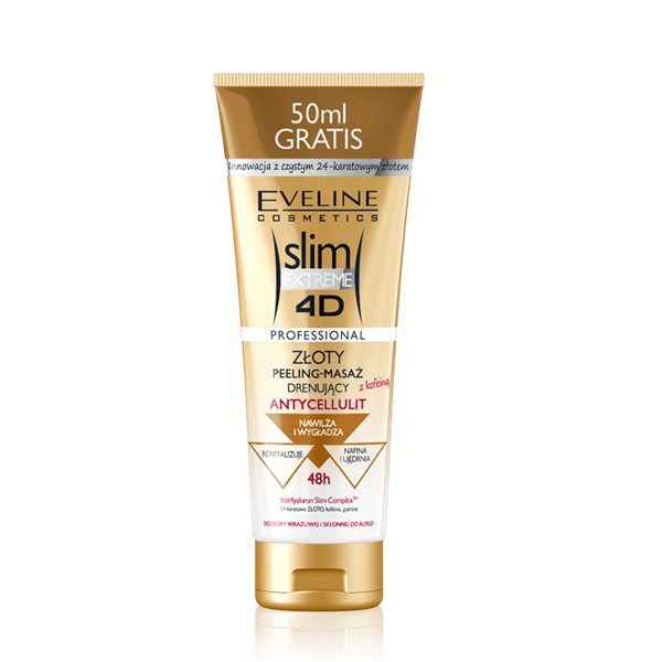 ZŁOTY PEELING-MASAŻ DRENUJĄCY to innowacyjny produkt wyszczuplający zainspirowany najnowszymi osiągnięciami światowej kosmetologii i medycyny estetycznej. Peeling-masaż skutecznie złuszcza martwy naskórek, przywracając skórze blask i świeżość.