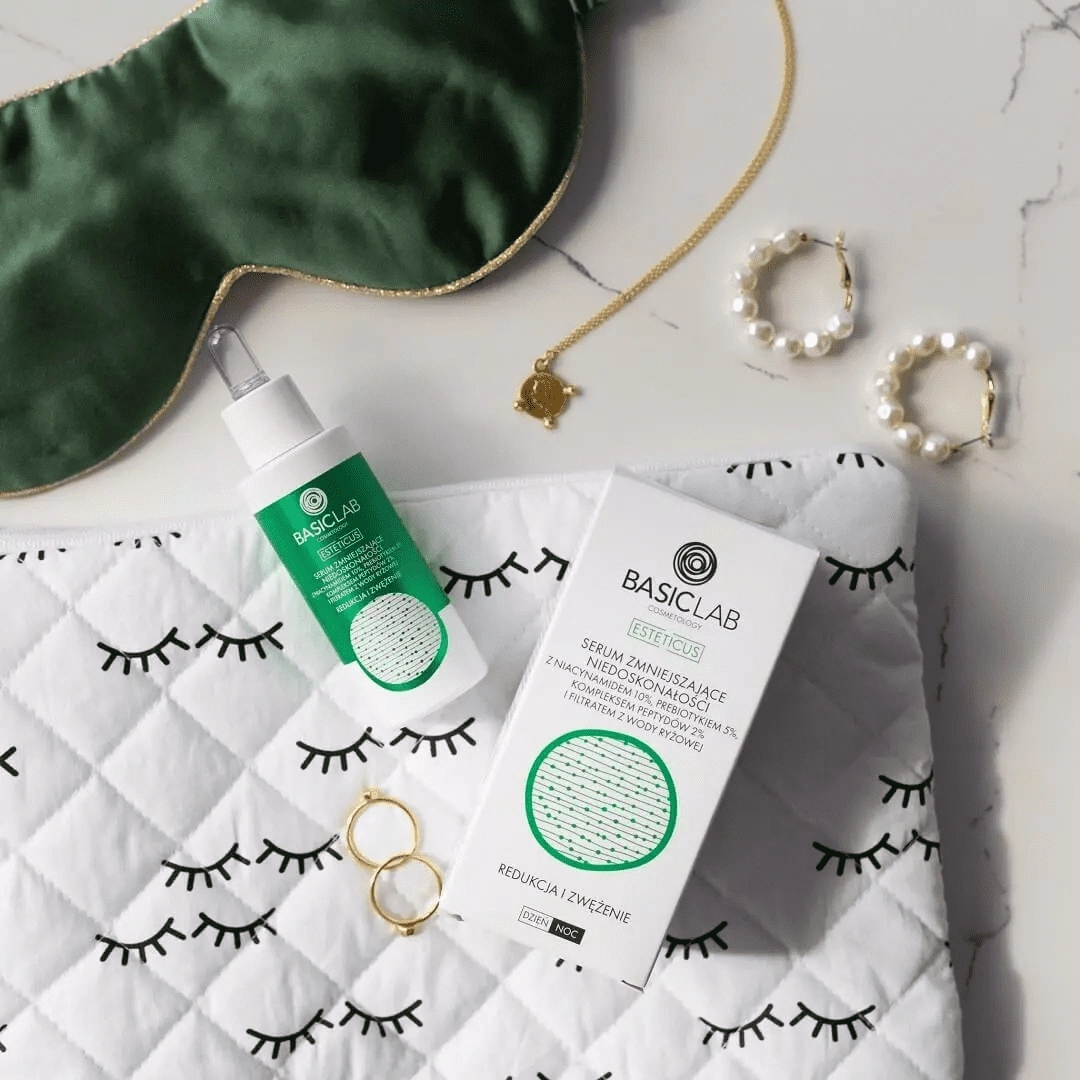 BasicLab Cosmetology Serum Zmniejszające Niedoskonałości z Niacynamidem 10% Redukcja i Zwężenie dla Skóry Problematycznej na Dzień i na Noc 30ml