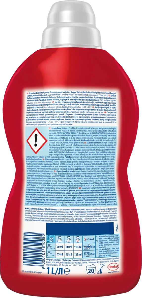 - Perwoll ze wzmocnioną, innowacyjną formułą, zapewnia delikatne czyszczenie ubrań przy jednoczesnej ochronie kolorów i włókien.