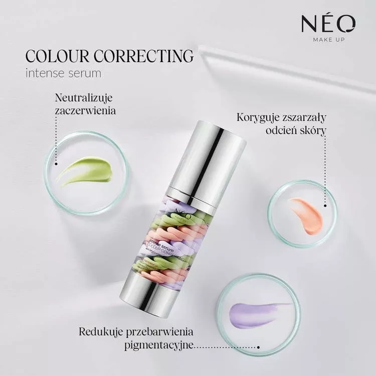 Fioletowy koryguje szary i żółty odcień skóry, brzoskwiniowy sprawia, że zasinienia i przebarwienia są mniej widoczne, a zieleń neutralizuje wszelkie zaczerwienienia.