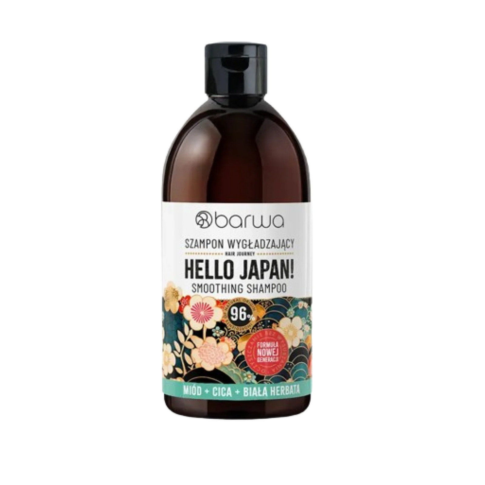 - Hello Japan wygładzający szampon o zapachu białej herbaty do pielęgnacji skóry głowy i włosów normalnych i puszących się. 96% składników pochodzenia naturalnego.