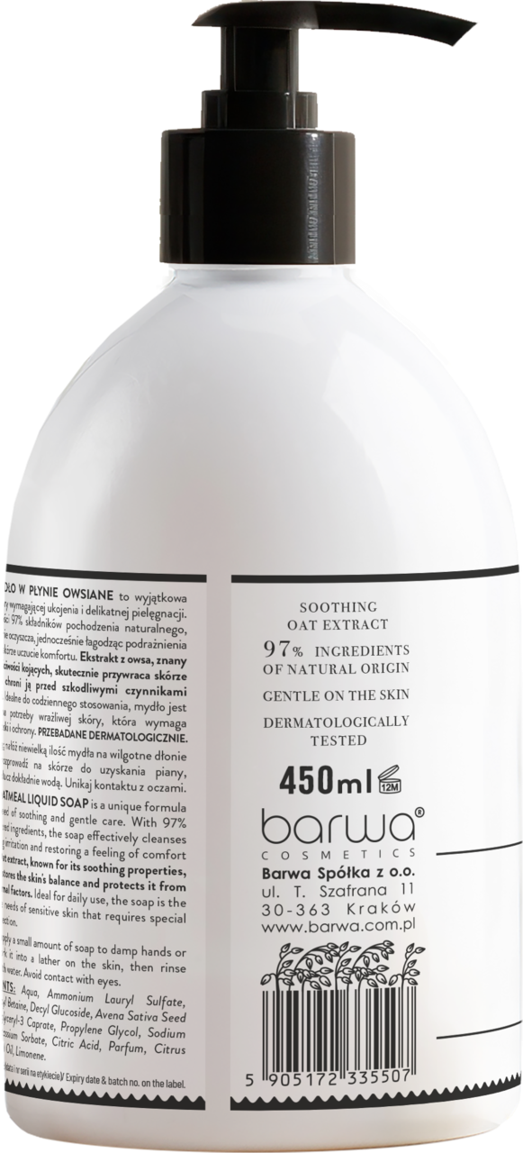 Barwa Pure Calm Kojące Owsiane Mydło w Płynie dla Skóry Wrażliwej i Suchej 450ml