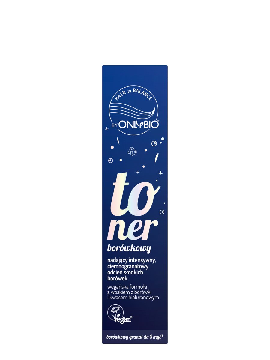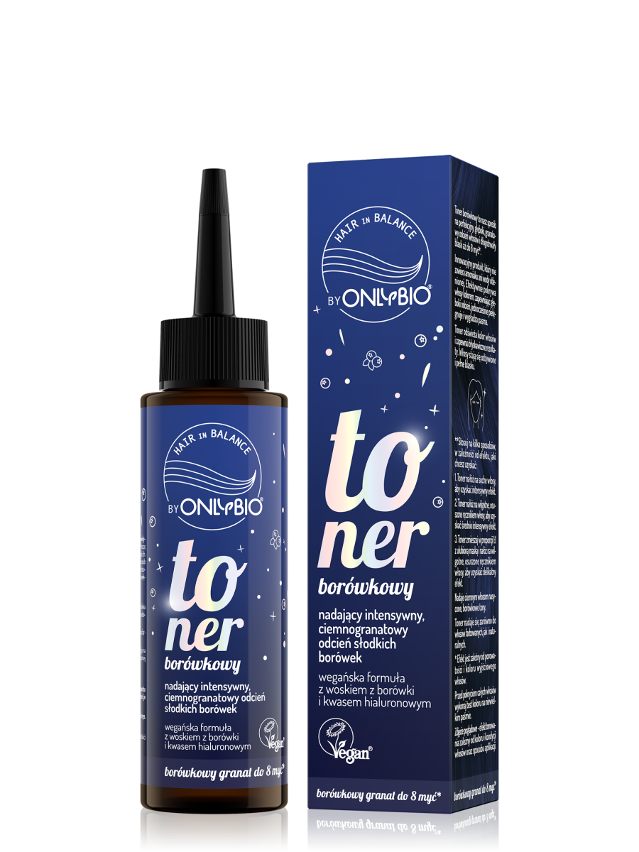 - Toner borówkowy – intensywny granatowy odcień dla włosów brązowych. Toner borówkowy OnlyBio to idealny wybór dla osób pragnących odświeżyć kolor i dodać włosom głębi, blasku oraz zdrowego wyglądu.
